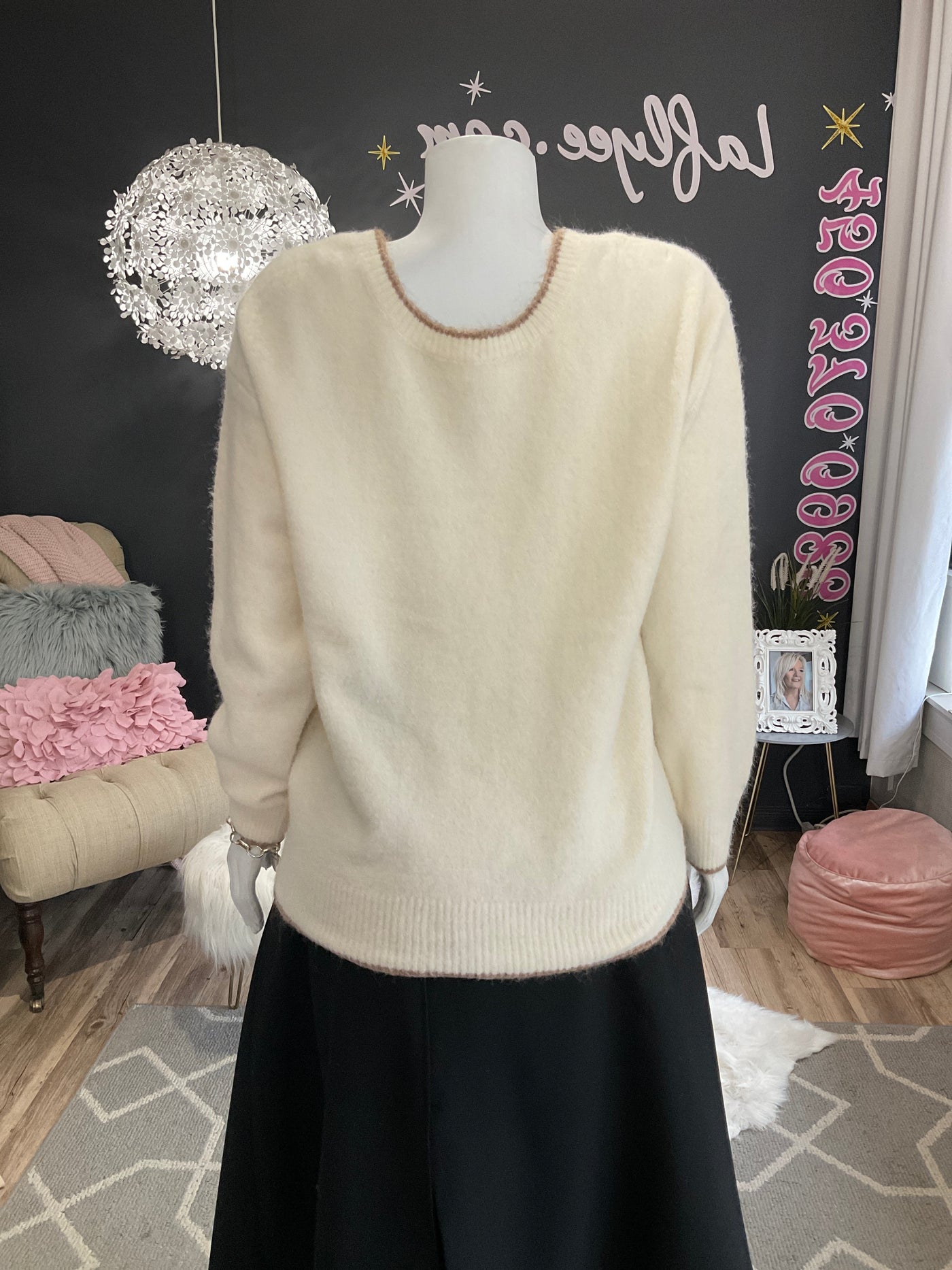 Ah25,11nov haut blanc cassé avec boucles 10% de laine