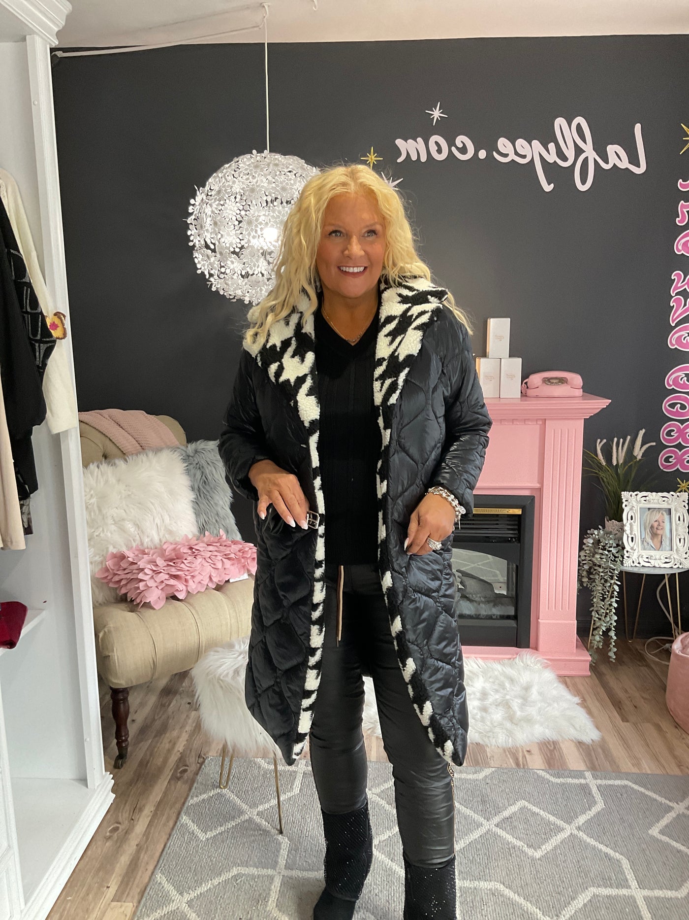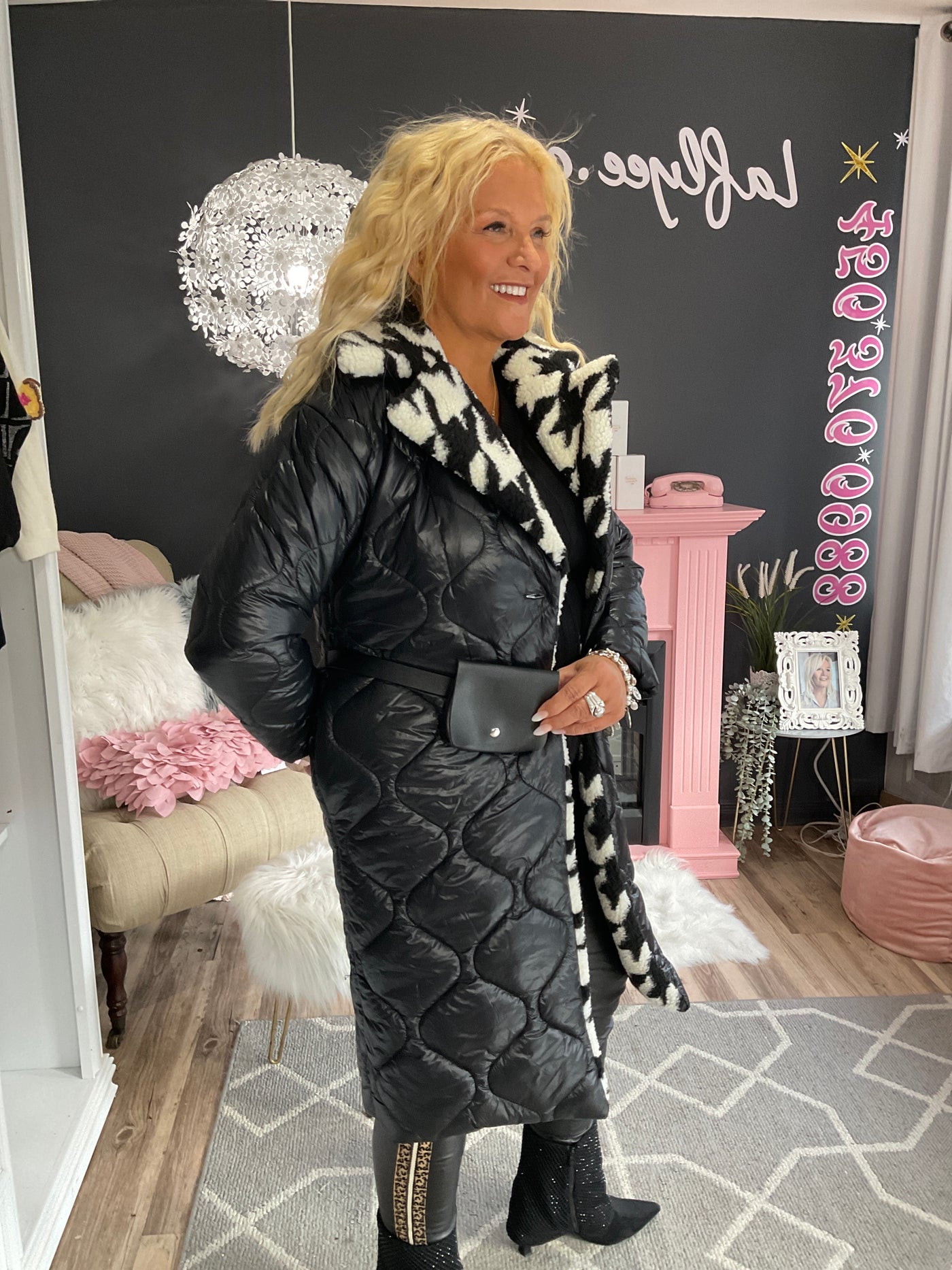 Manteau noir long avec ceinture collet pieds de coq en peluche,taille unique