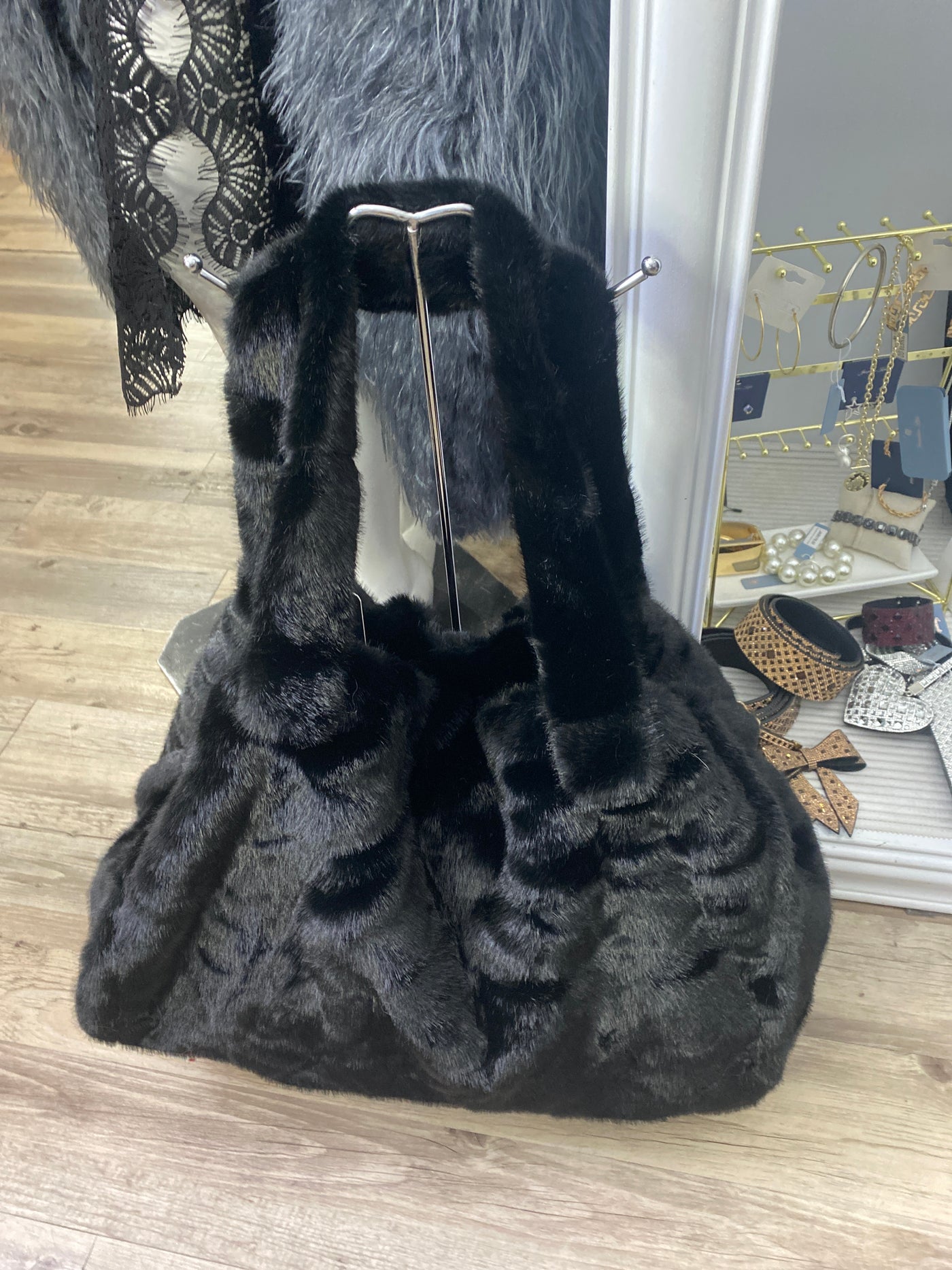 Ah25,404nov Sac en fourrure synthetique noir Angela Mara