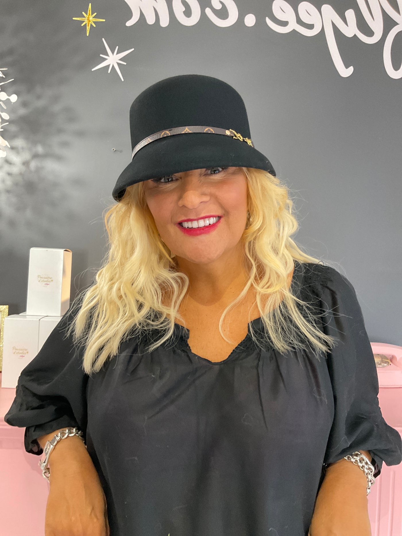 Ah25,439 Chapeau noir avec imprimé l V brun ajustable