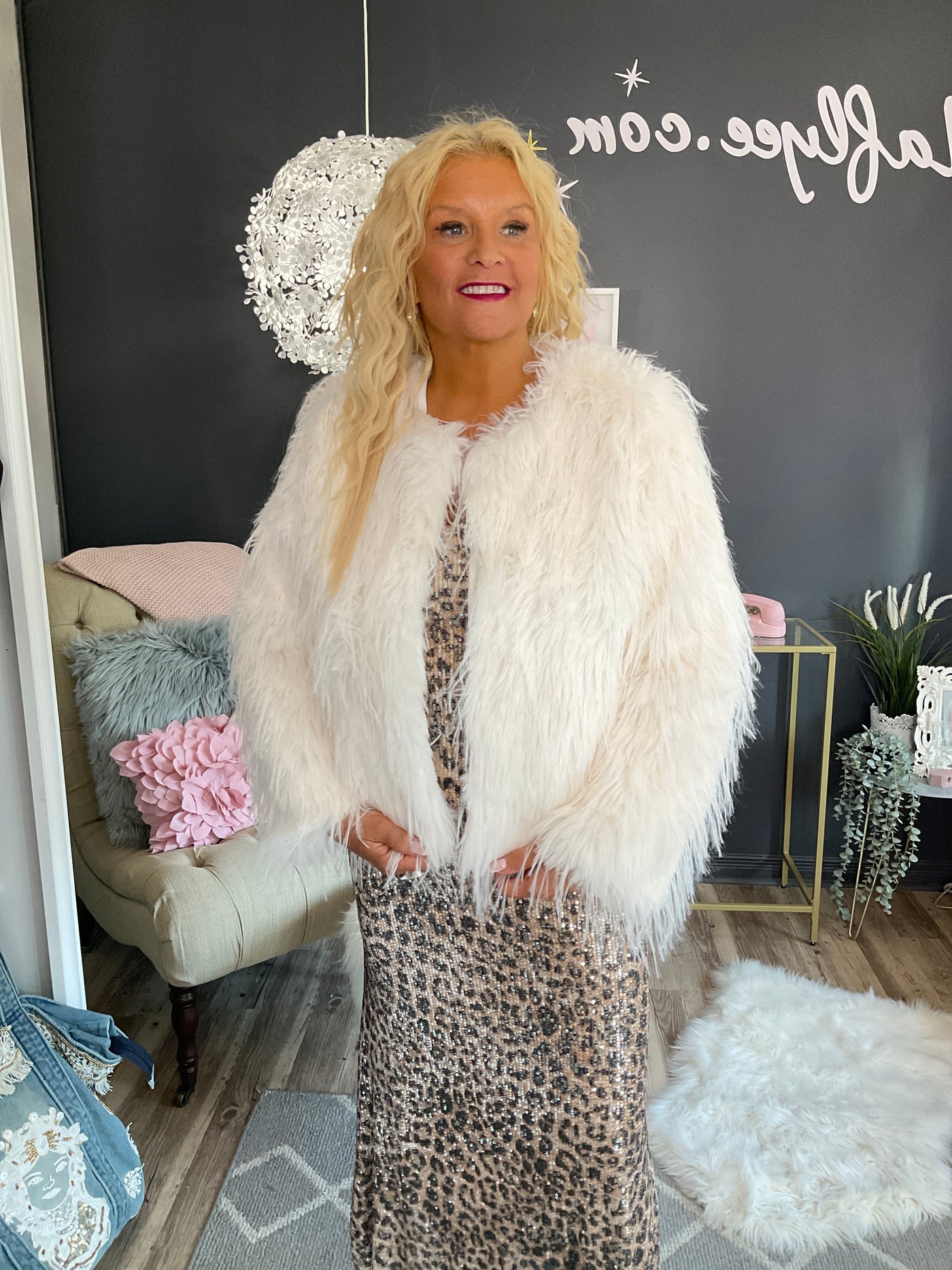 Manteau blanc cassé en fourrure synthétique,taille unique,44 pouces de buste