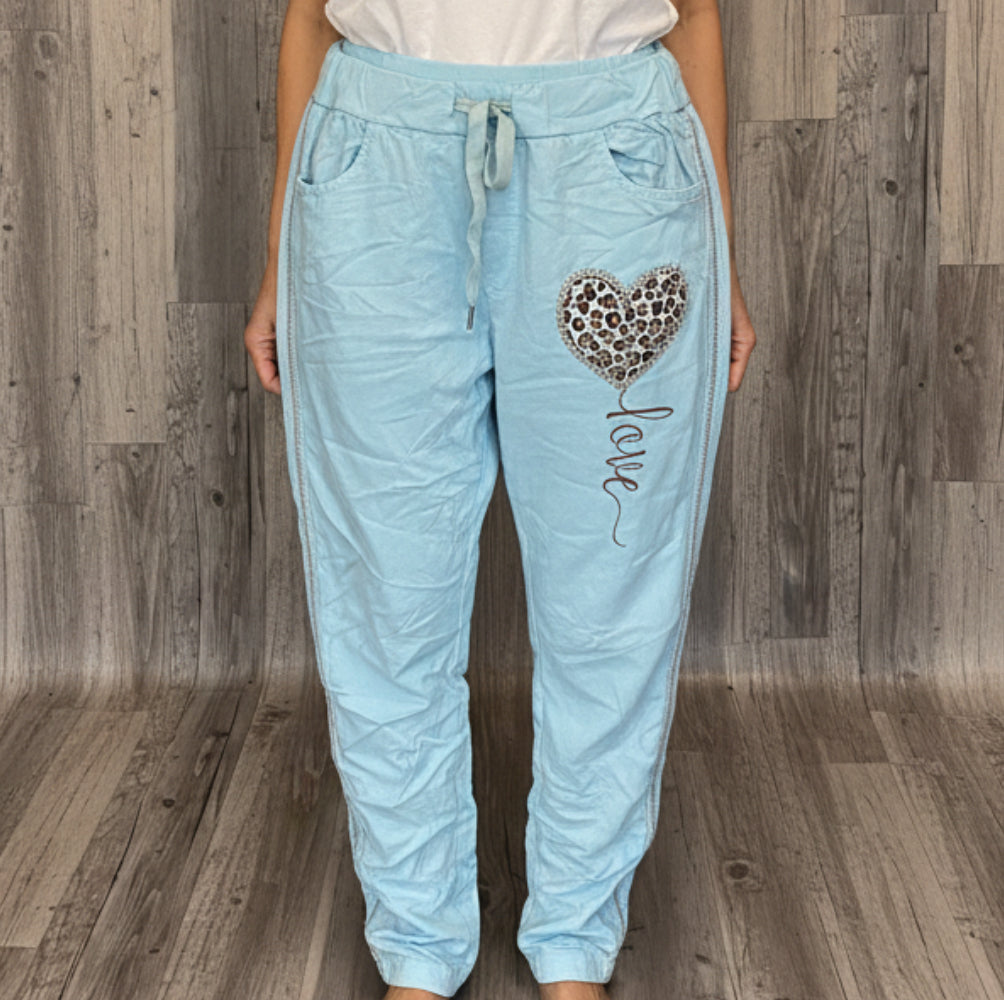 Pe26,112janv Pantalon Aqua avec cœur en léopard taille unique