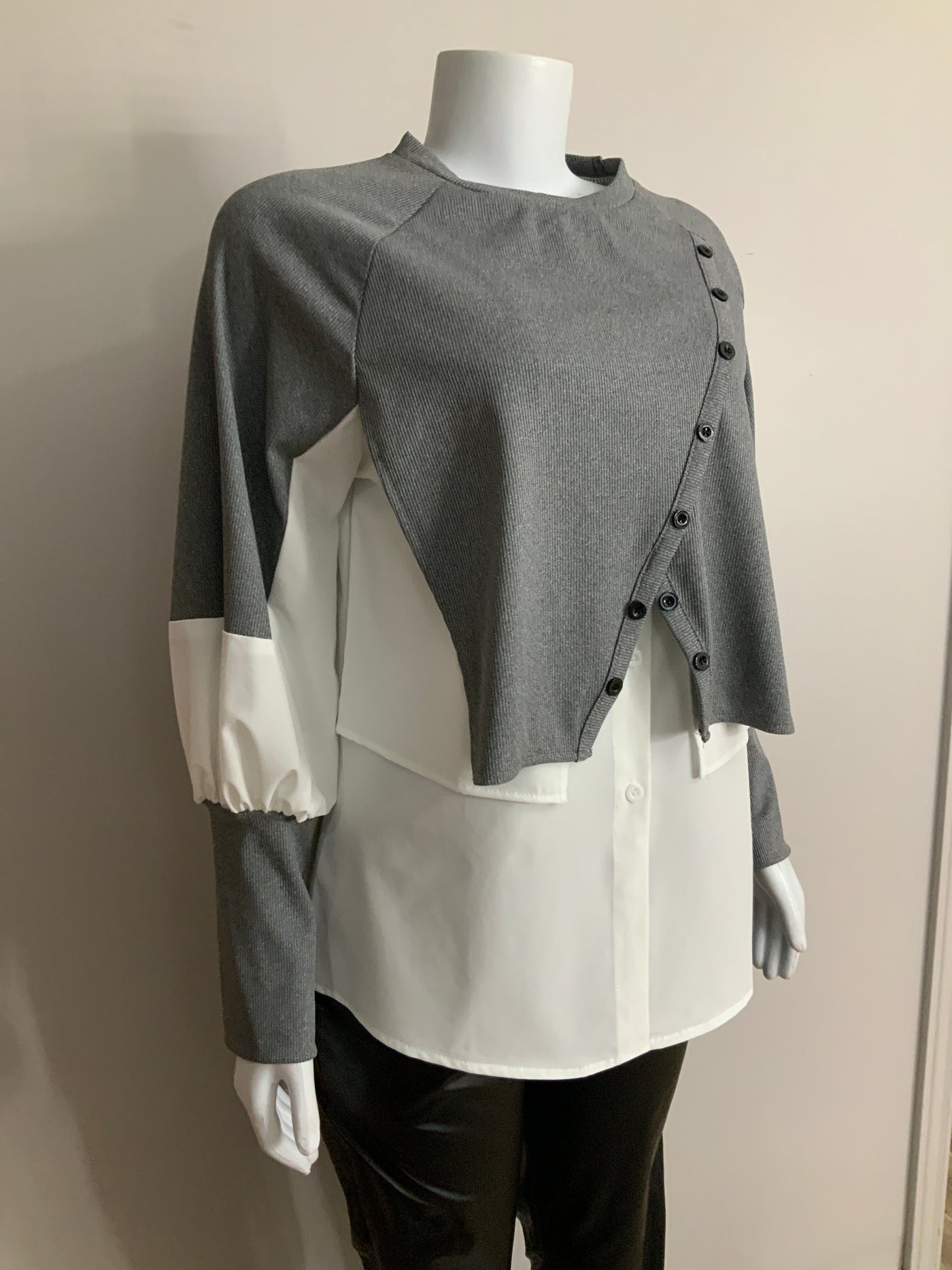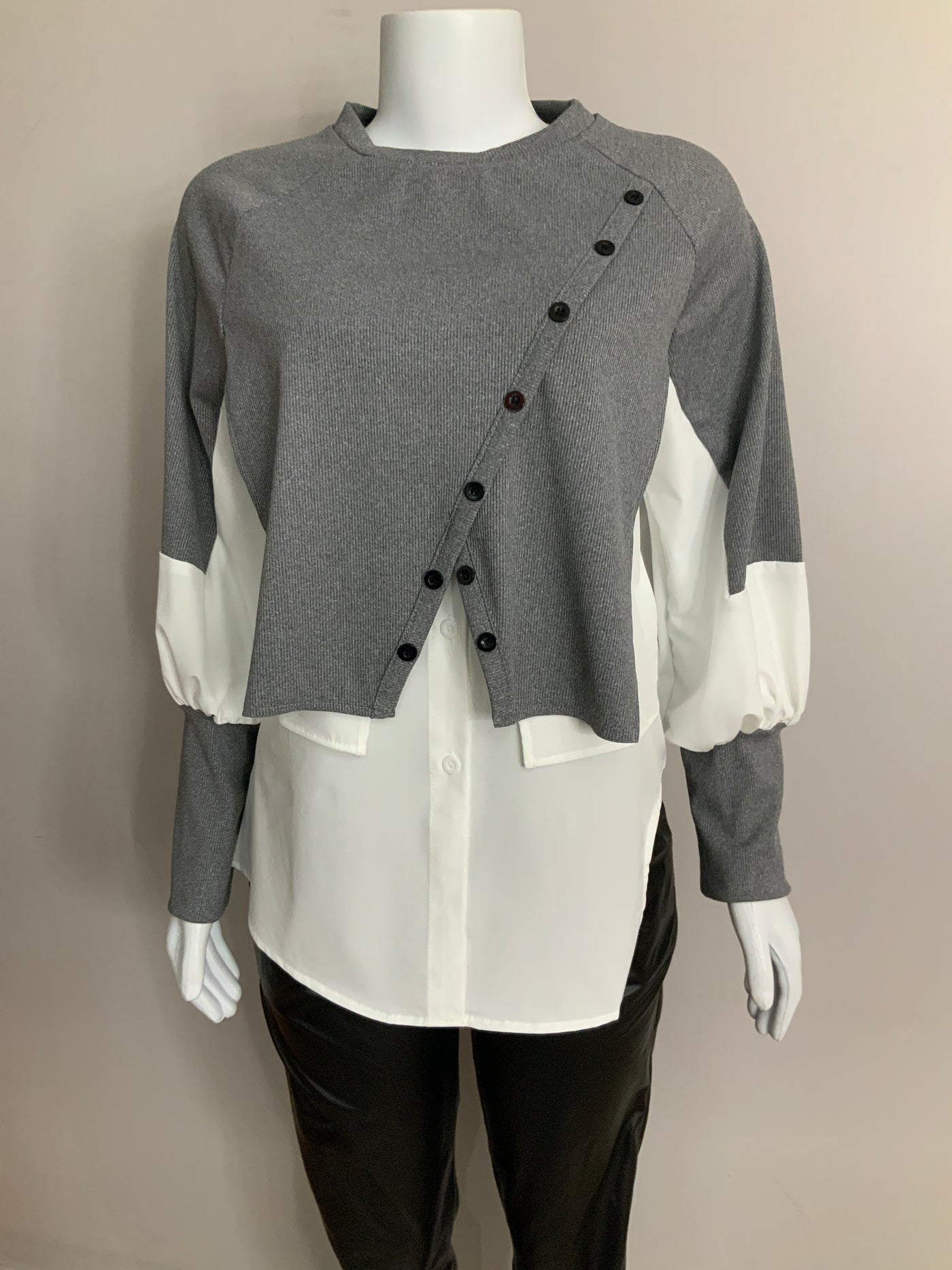 Pe26,20janv Chemisier blanc et gris taille médium,42 pouces de buste