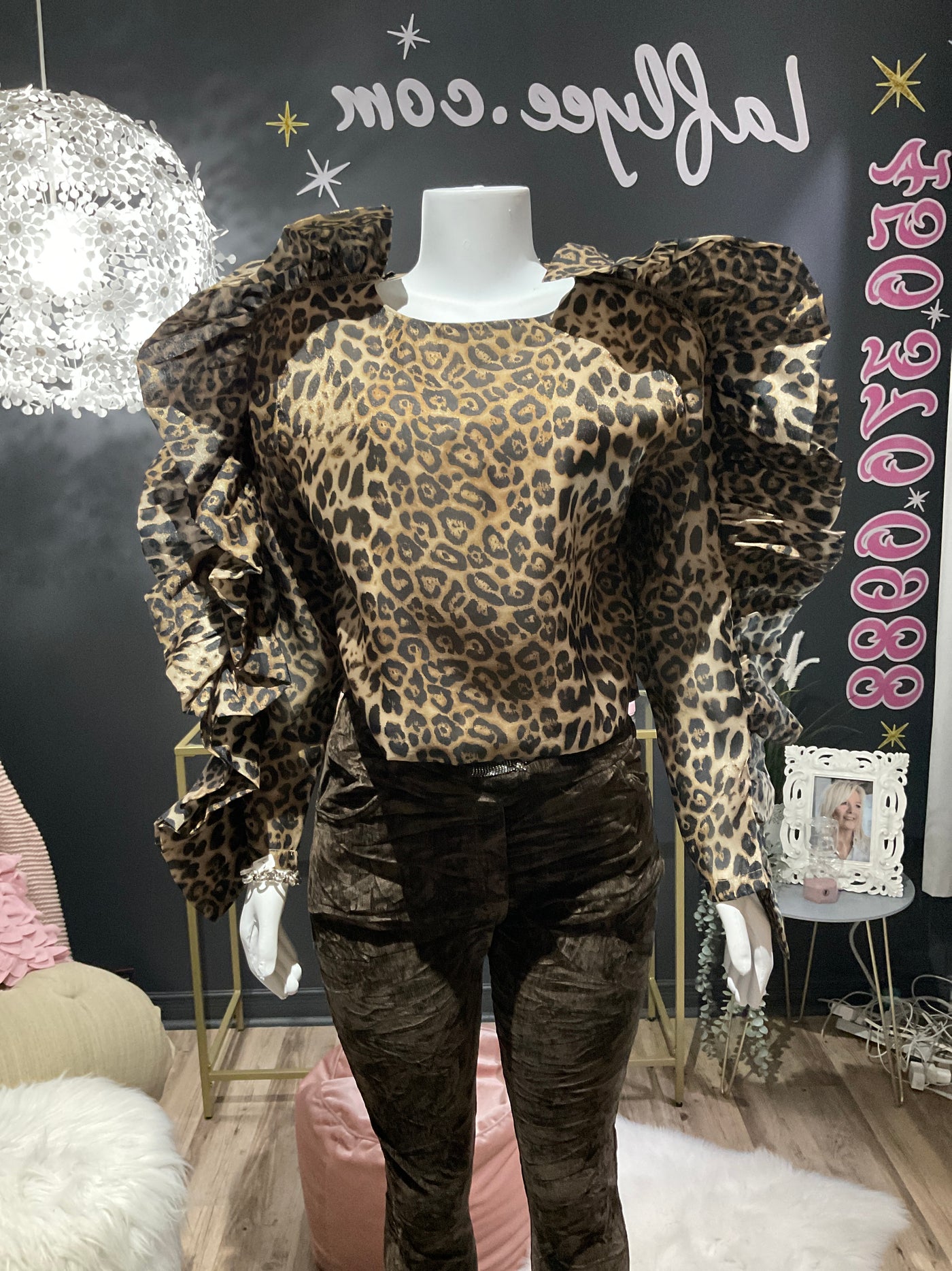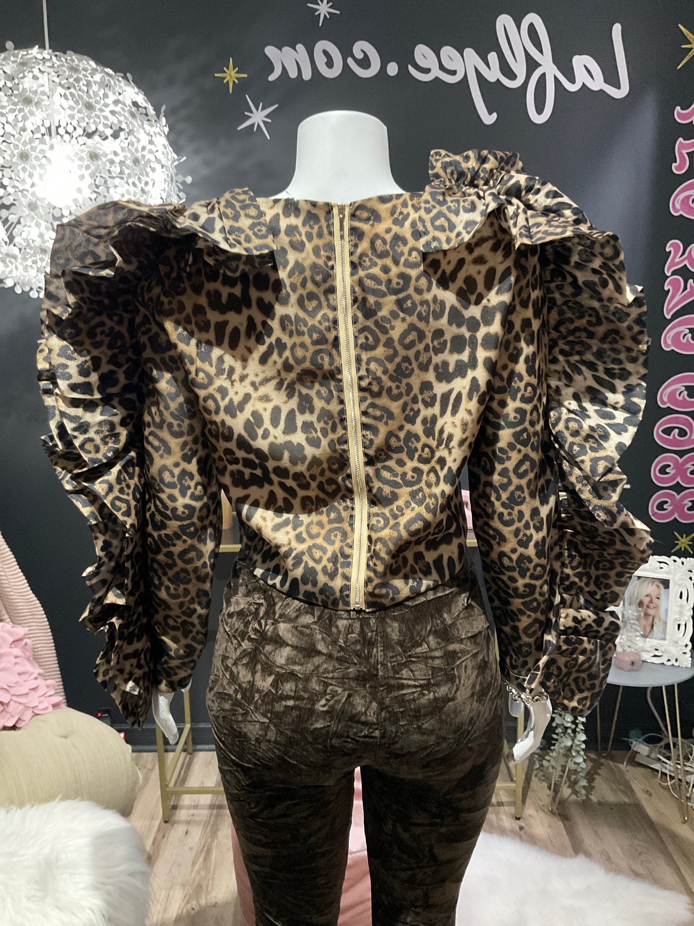 Haut léopard avec manches à volant,taille unique ,40 pouces de buste