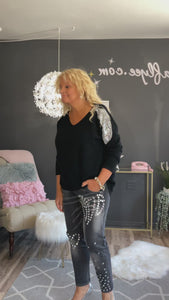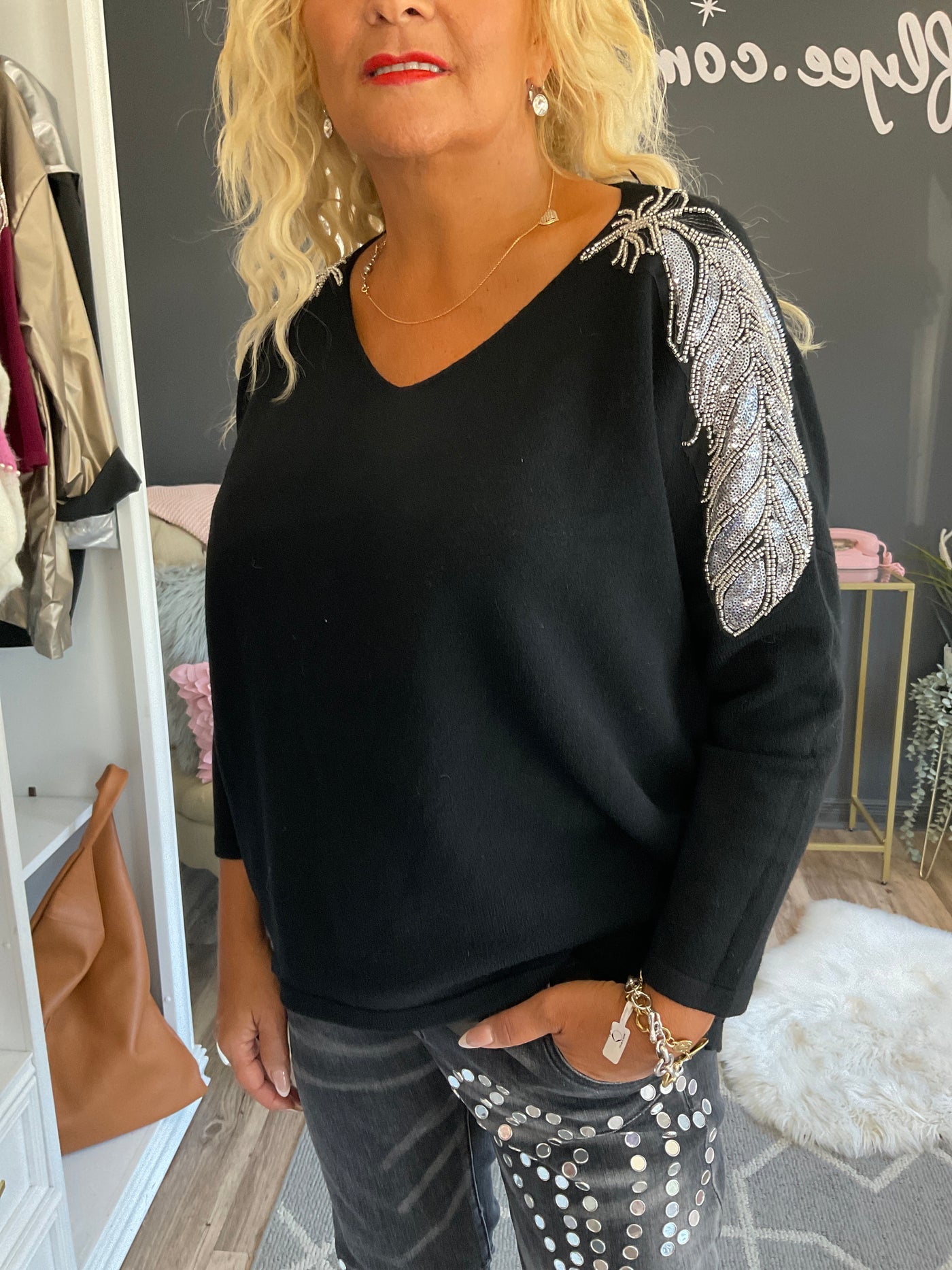 Haut noir avec ailes avec paillettes,taille oversize 60 pouces de buste