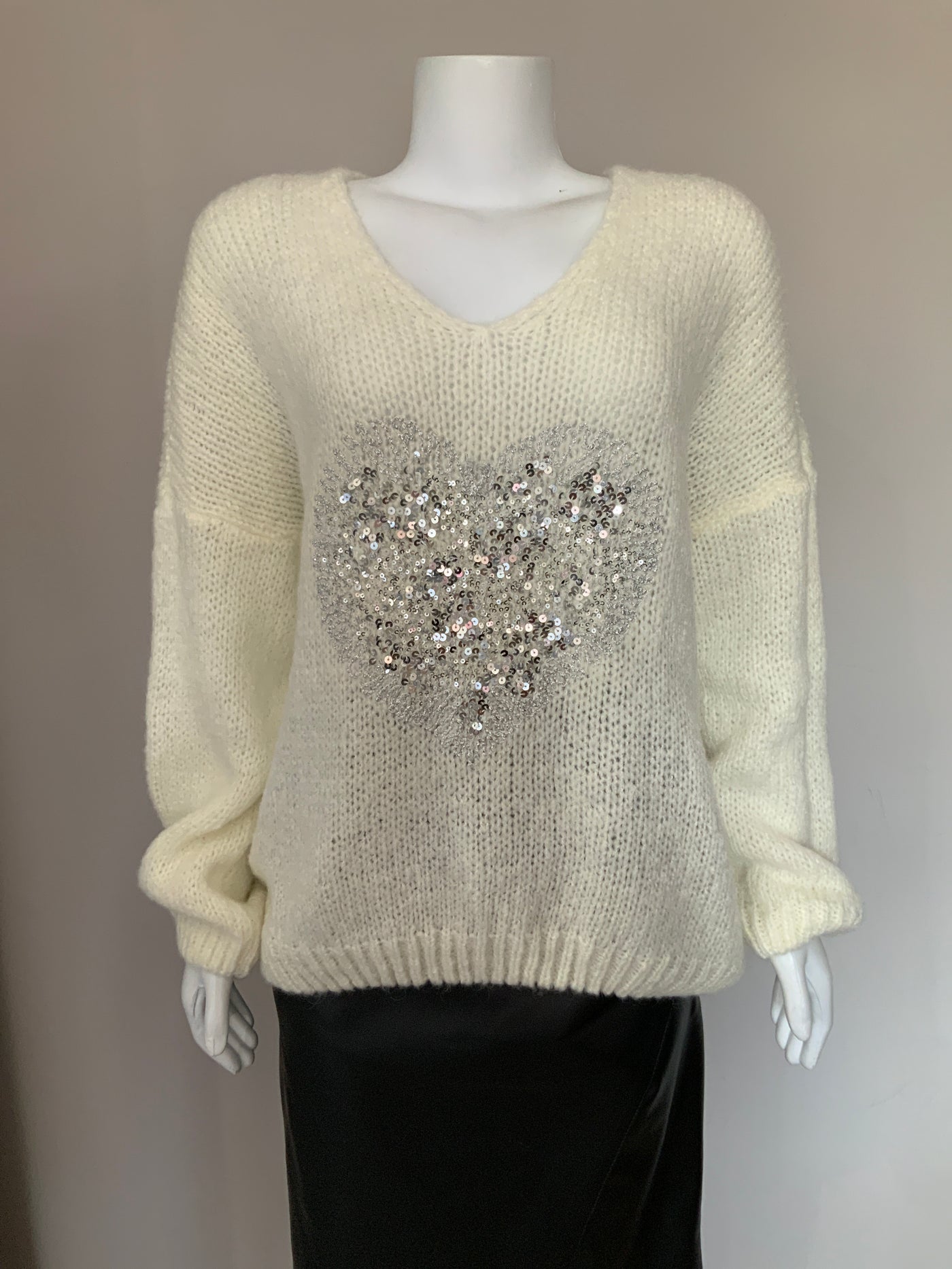 Haut blanc cassé avec coeur à paillettes,taille unique,54 pouces de buste