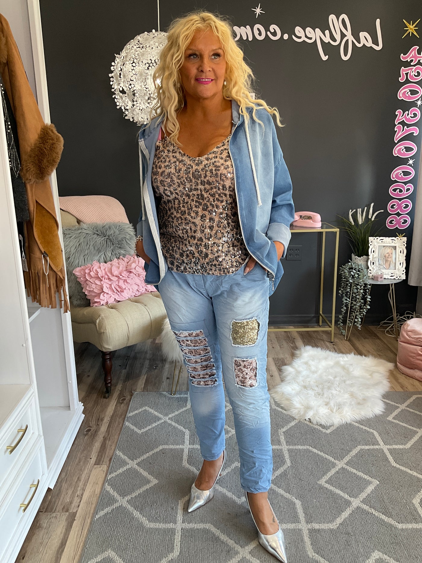 Pantalon tensel avec style effiloché léopard,paillettes,taille unique