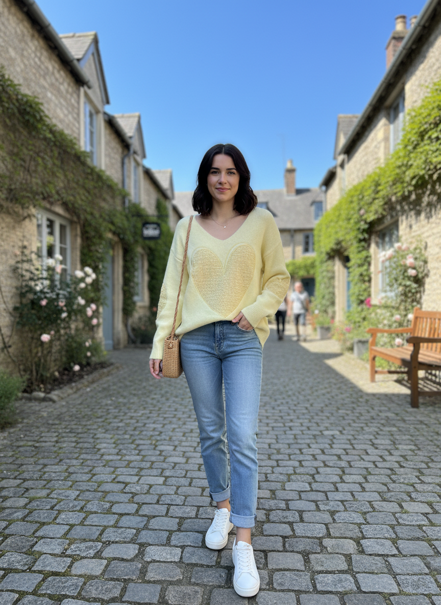 Pe26,18fev Haut jaune avec cœur et cœur sur les bras