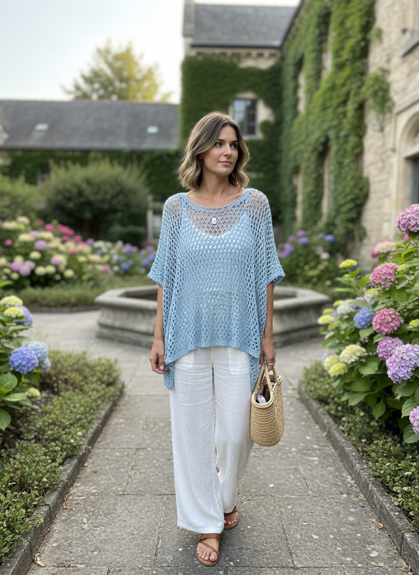 Pe26,27fev Haut à filets bleu et fil argenté angela Mara