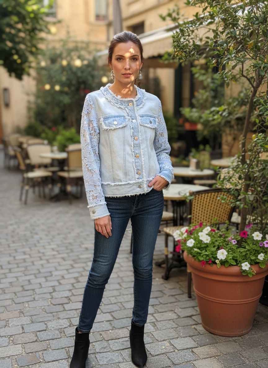 Pe26,302mars Jacquet de jeans avec manche fleurie