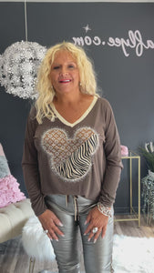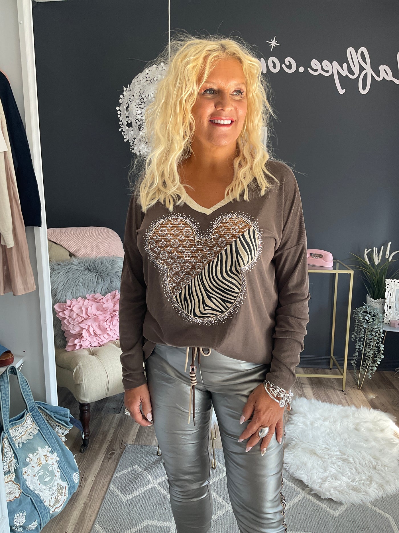 Haut brun taupe avec Mickey avec studs argent et or,taille unique ,48 pouces de buste