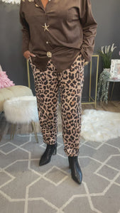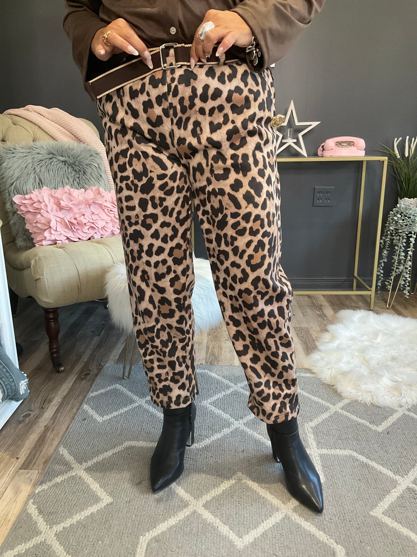 Pantalon léopard en suédine avec ceinture brune,taille unique 7/8