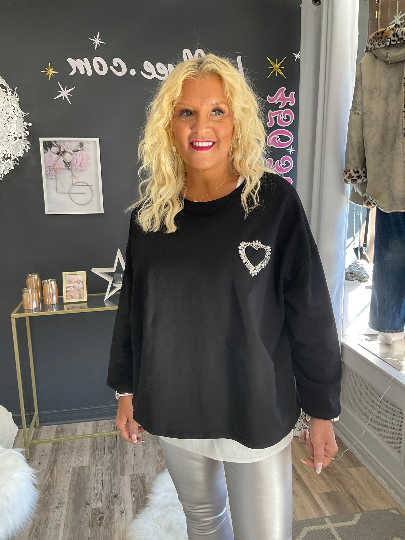 Haut noir avec cœur en studs et pierres,Angela Mara