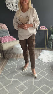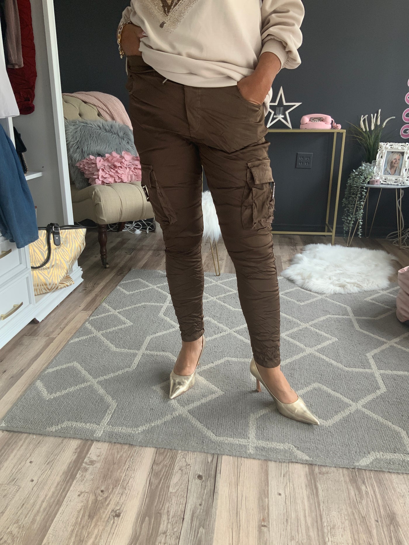 Pantalon cargo brun satiné ,taille unique,promotion