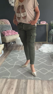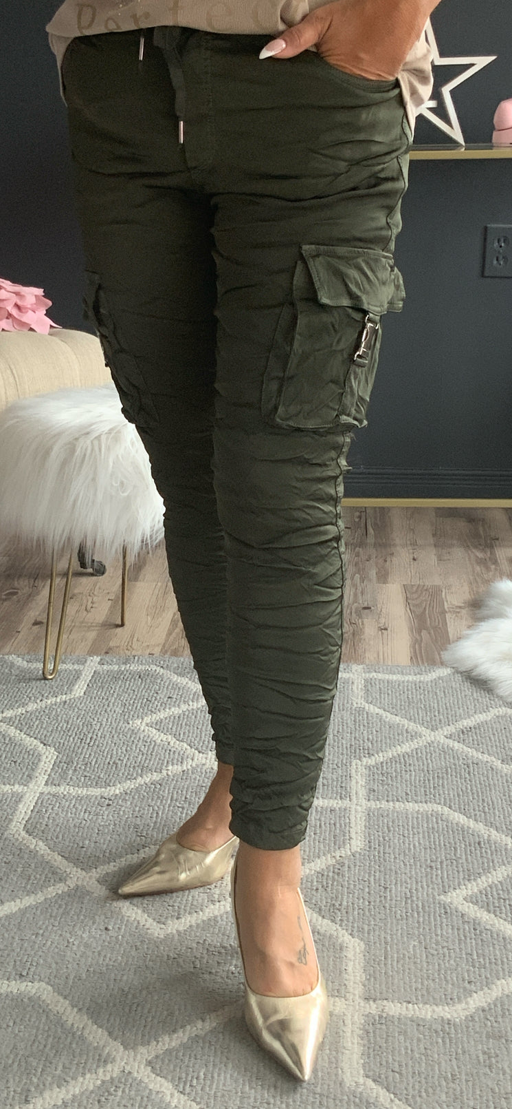 Pantalon cargo kaki satiné ,taille unique,promotion
