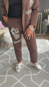 Pantalon brun avec Mickey Mouse avec pierres,taille unique