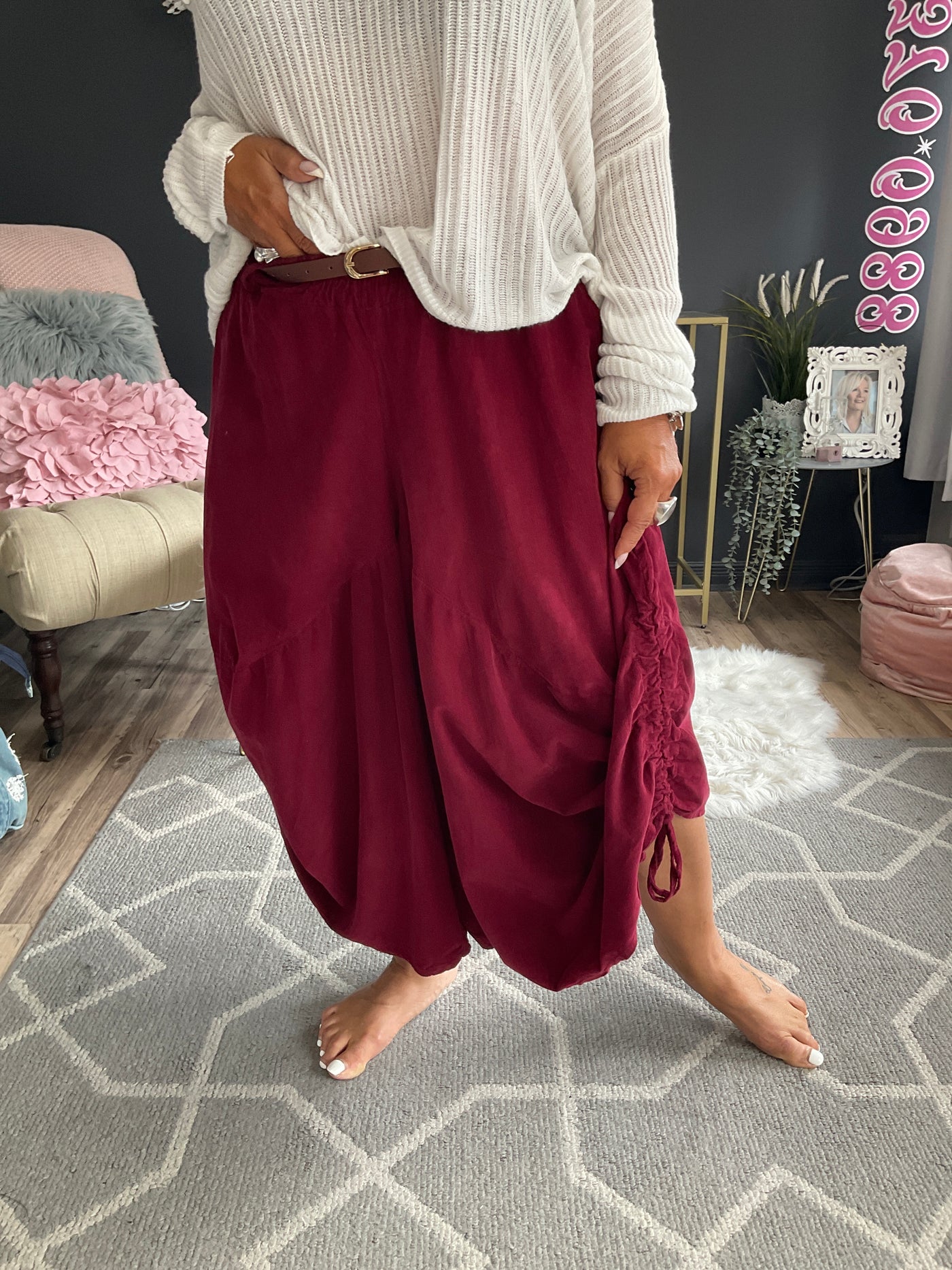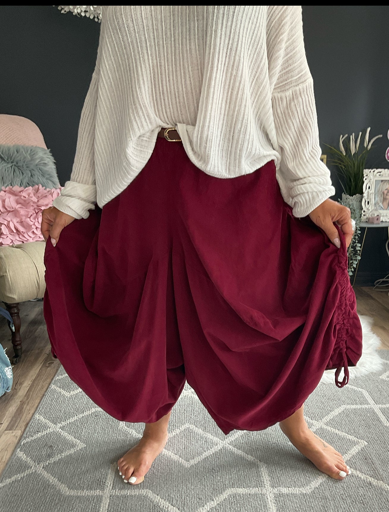 Pantalon ballon bourgogne,en velours côtelé,taille unique