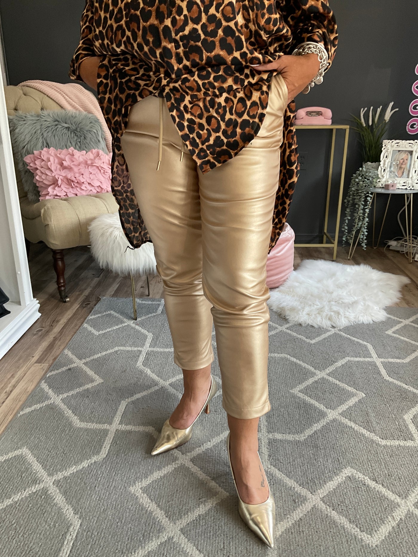 Pantalon light gold en cuir synthétique,Angela Mara