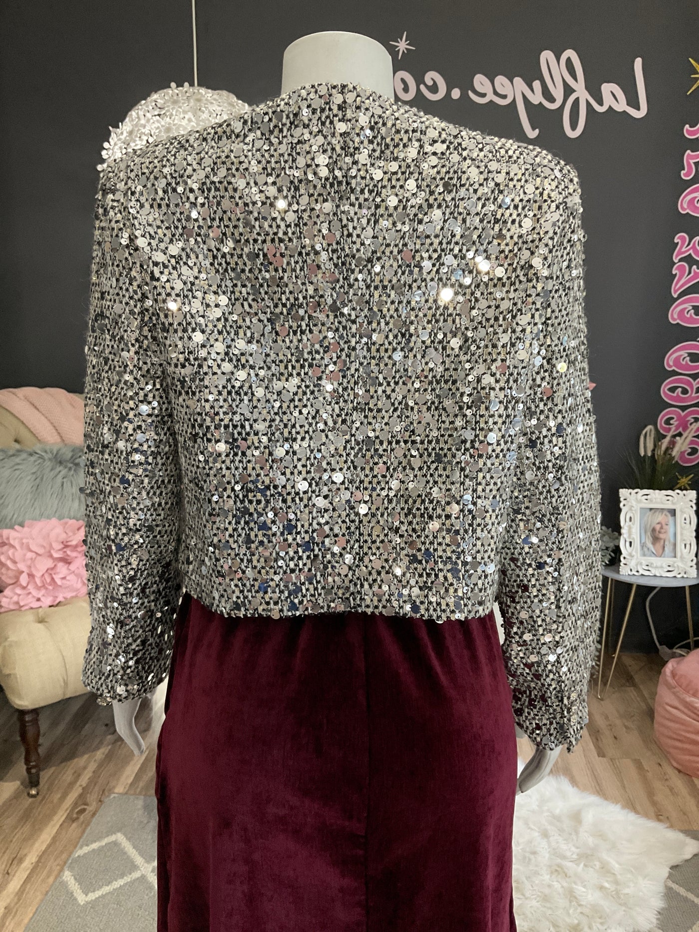 Ah25,308nov Veste à paillettes argent