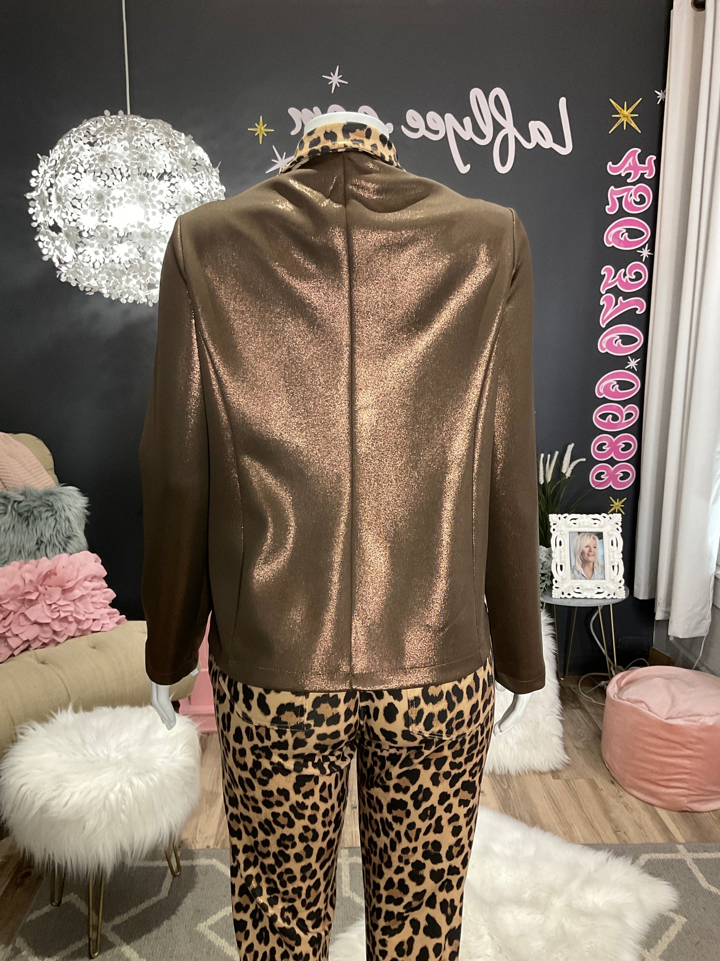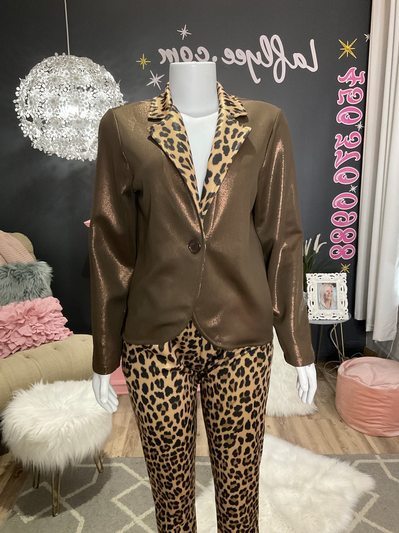 Veston brun métallique et léopard au collet ,taille unique,40 pouces de buste