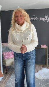 Haut blanc  cassé avec pierres ,100%polyestere,taille petit / moyen