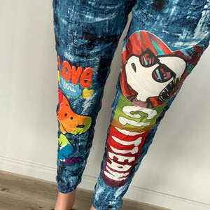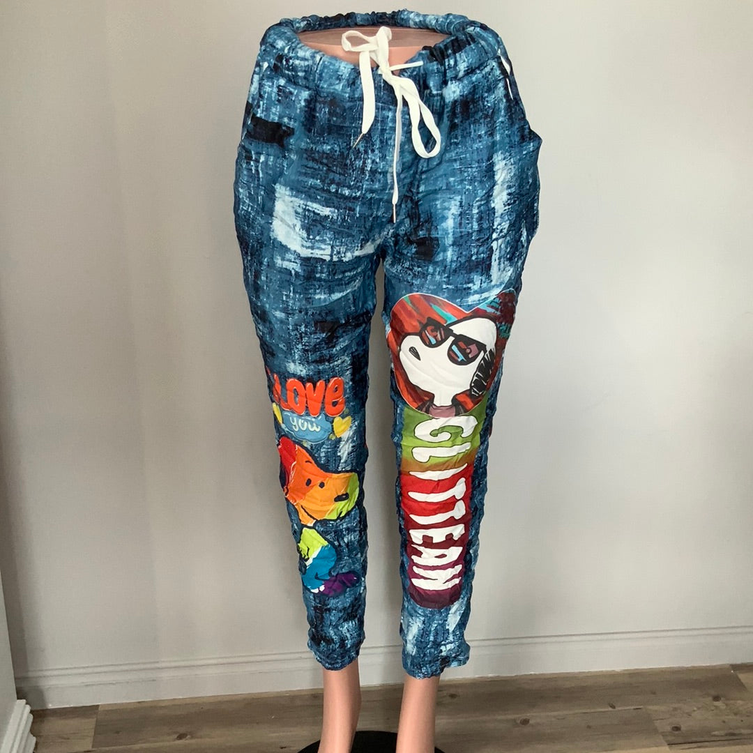 Pantalon bleu avec imprimé snoopie,taille unique